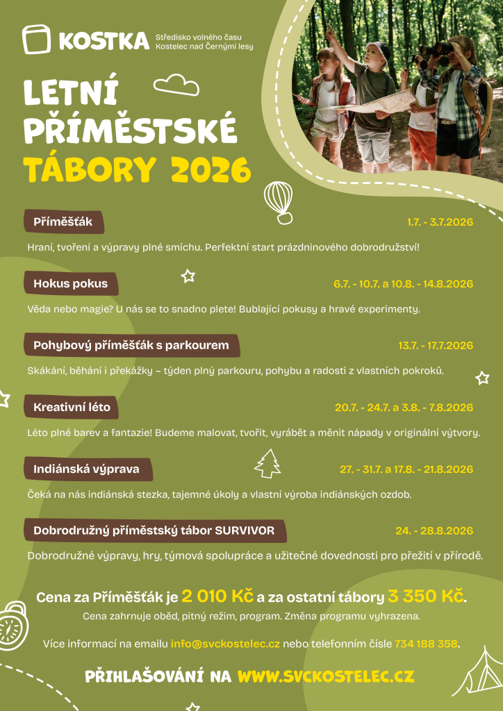 Dopřejte svým dětem prázdniny plné radosti a nezapomenutelných zážitků. Kapacita táborů je omezená, proto neváhejte s včasnou registrací.