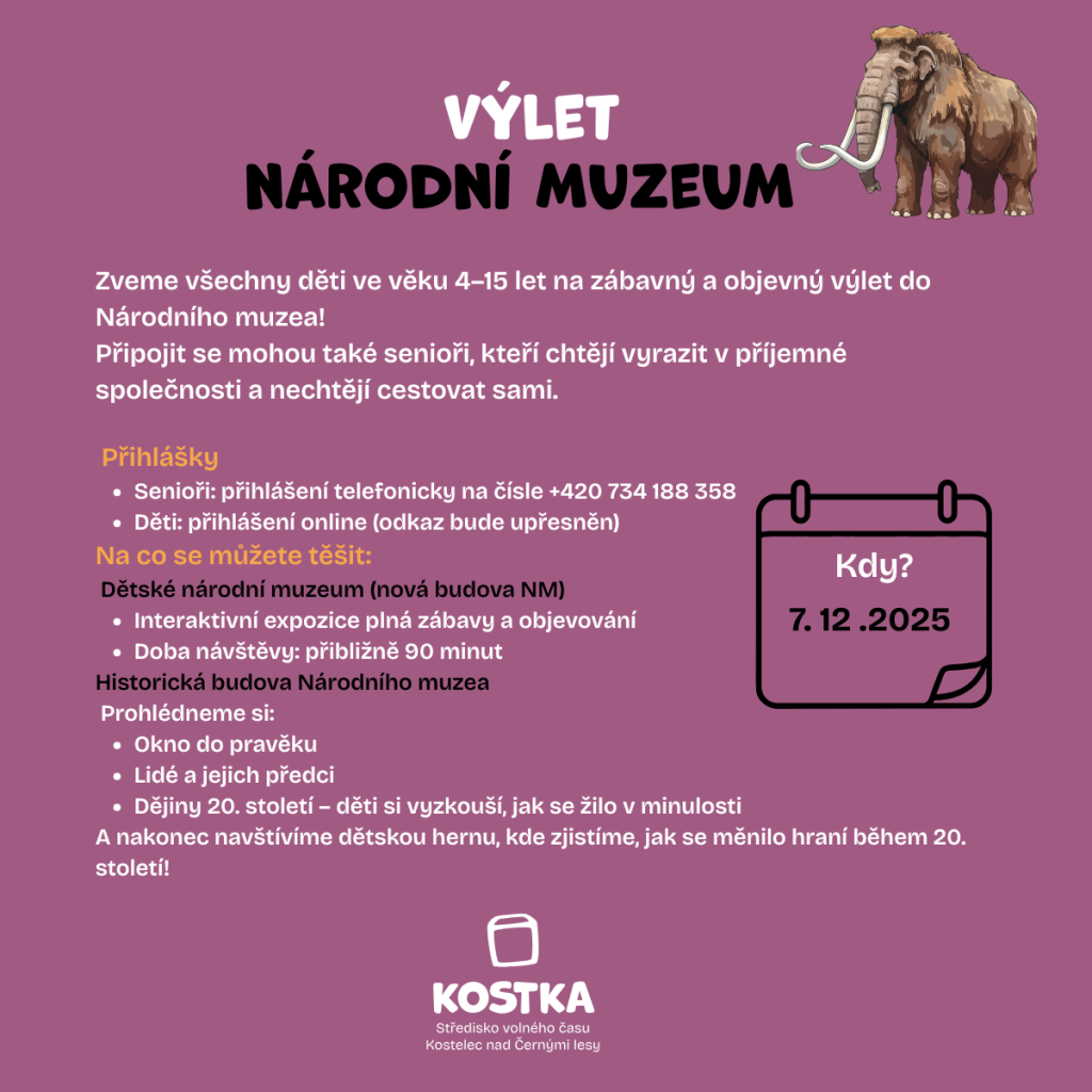 Zveme všechny děti ve věku 4–15 let na společný výlet do Národního muzea v Praze!